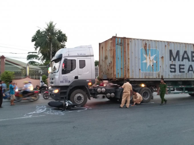 Khi đến chân cầu vượt trạm 2, người này cho xe rẽ trái để lên cầu thì va chạm với xe container biển số 51C-777.34 chạy cùng chiều phía sau.
