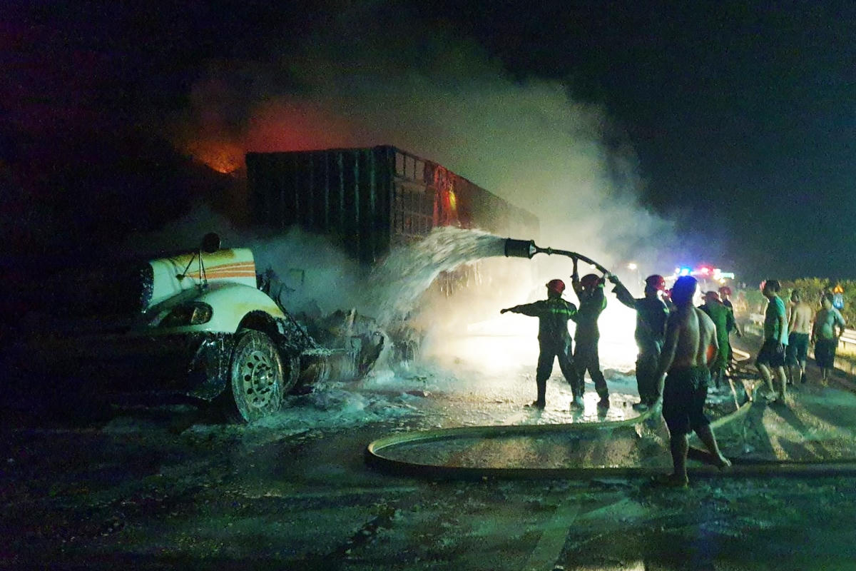 Khi phát hiện sự việc, tài xế đã nhanh chóng đỗ xe vào làn khẩn cấp và hô hoán người đi đường dập lửa nhưng bất thành. Ngọn lửa bùng lên nhanh chóng và bao trùm phần cabin xe.
