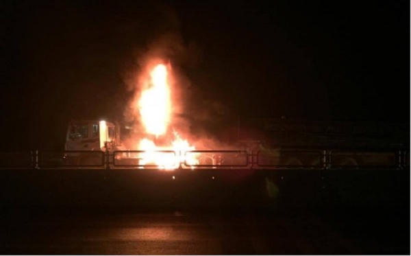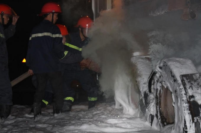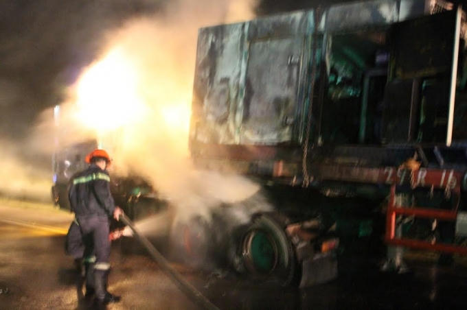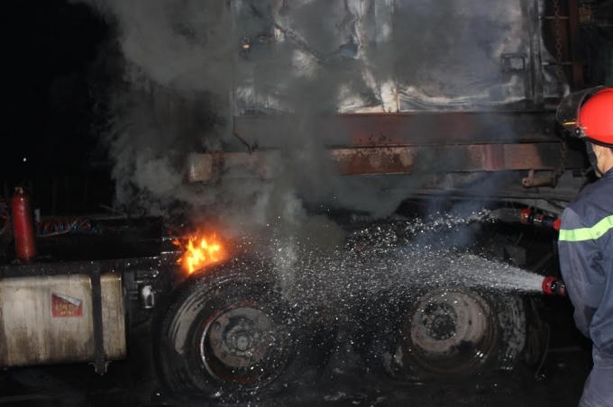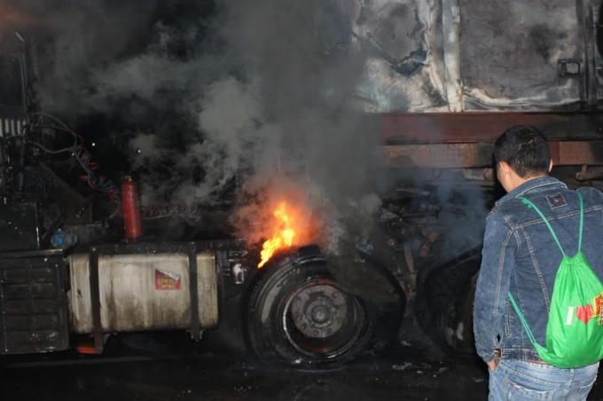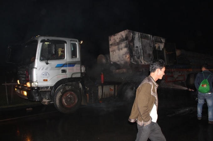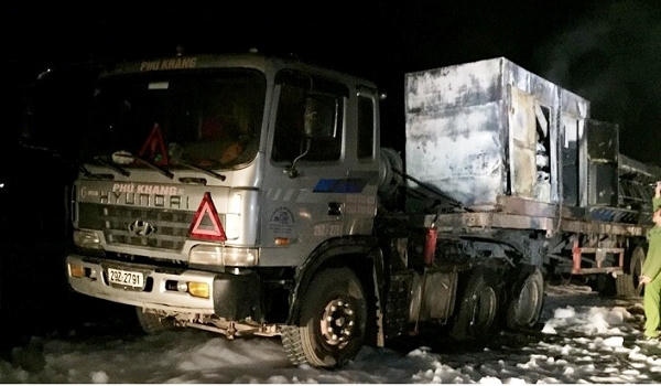 Tại hiện trường, phần thân xe của chiếc xe tải bị hư hỏng nặng, nhiều quả lốp bị cháy và một máy biến áp trên xe bị thiêu rụi hoàn toàn. Rất may vụ cháy không có thiệt hại về người.