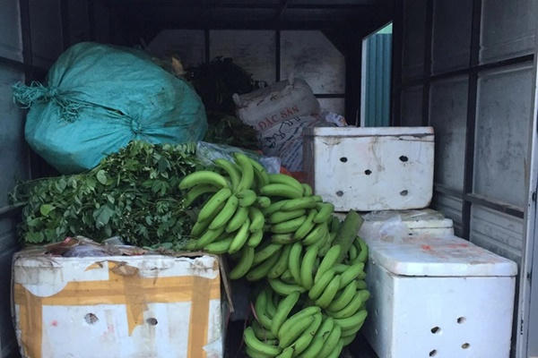 Theo đó, lực lượng trực chốt kiểm soát số 16 phát hiện chiếc xe tải BKS 37C-326.62 của nhà xe nem Tứ Phương chở hàng hóa thực phẩm.