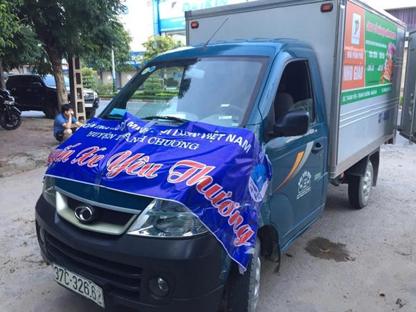 Xe tải giả xe đoàn Thanh niên để giao hàng lẻ cho người dân trong thành phố Vinh.