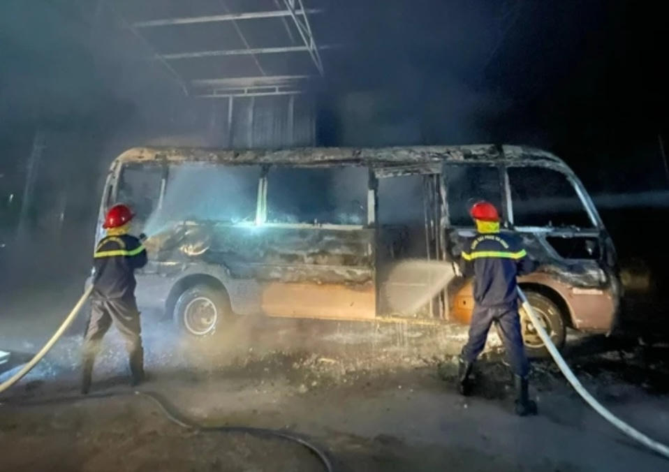Đến khoảng 20 giờ 40 phút, đám cháy đã được dập tắt nhưng chiếc xe khách 29 chỗ bị cháy rụi hoàn toàn. Rất may không thiệt hại về người.