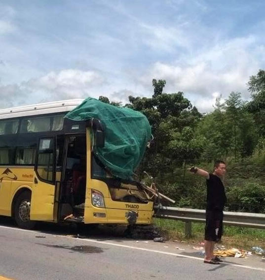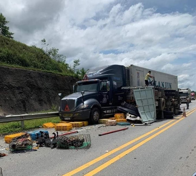 Xe khách đâm xe tải chở gia cầm trên cao tốc Nội Bài - Lào Cai