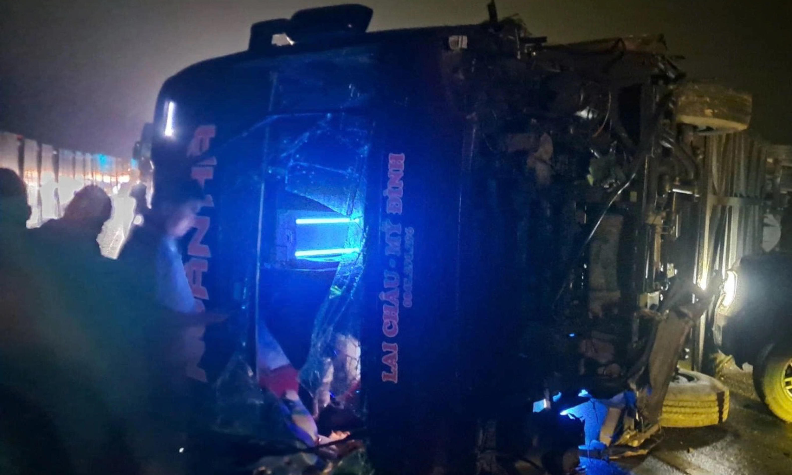 Xe khách lật nhào trên cao tốc Nội Bài-Lào Cai, 5 người bị thương