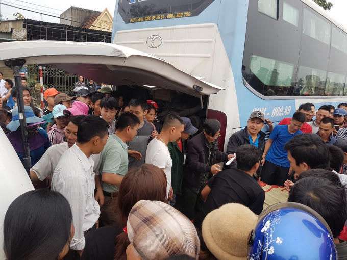 Chiếc xe khách bất ngờ xảy ra va chạm với hai xe máy trên quốc lộ 1A, khiến hai người tử vong tại chỗ, 2 người khác nguy kịch.