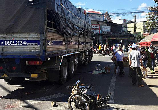 Trong lúc di chuyển, xe máy bị cuốn vào gầm xe tải. Hậu quả, khiến ông Dân tử vong, bà Phát bị thương nặng.