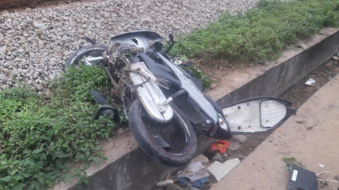 Cú va chạm kinh hoàng khiến chiếc xe máy văng xa khỏi đường ray hơn 20m, chiếc xe máy bị hư hỏng, biến dạng. Vụ tai nạn khiến 1 người tử vong tại chỗ, một người khác bị thương nặng được đưa đến bệnh viện cấp cứu ngay sau đó.