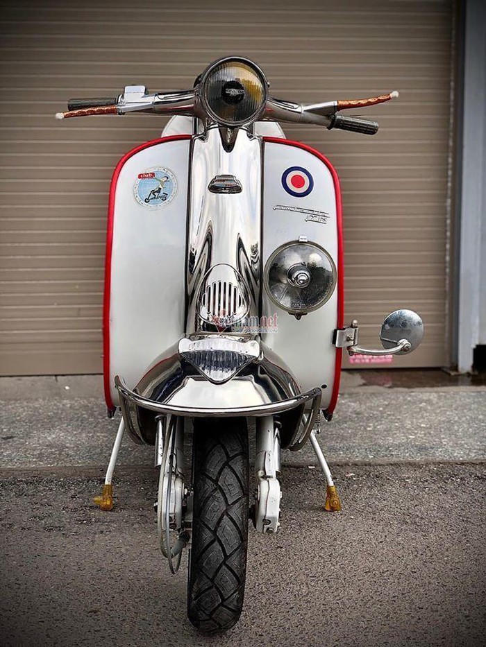 Xế cổ Lambretta hơn 60 tuổi nhưng ngoại hình mới cứng với nhiều chi tiết mạ crom sáng bóng.