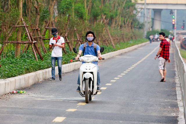 Con đường đi bộ dài nhất Thủ đô tuy chưa chính thức đi vào hoạt động, nay đã xuất hiện nhiều xe máy lấn chiếm gây nguy hiểm trực tiếp cho những người đang đi bộ trên đoạn đường này.