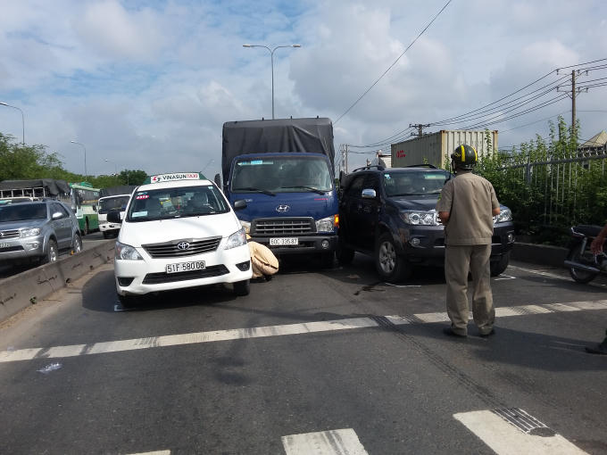 Khi tới trước khu chế xuất Linh Trung (phường Linh Trung, quận Thủ Đức, TP HCM) thì tài xế cho xe vượt lên giữa xe ô tô 7 chỗ biển số 51F-642.00 và xe taxi 51F-580.08 chạy cùng chiều song song phía trước nên xảy ra va chạm liên hoàn giữa 3 xe.
