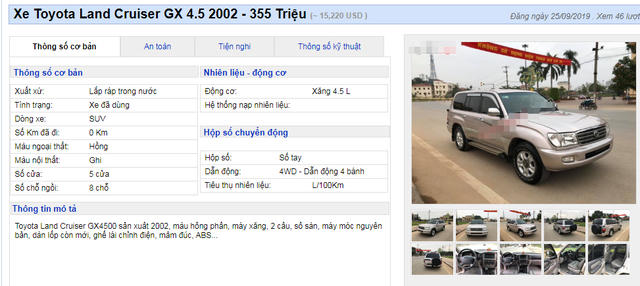 Theo ông Mạnh, chủ của chiếc Land Cruiser sang trọng đời 2002 cho biết đang bán chiếc xe với giá 355 triệu đồng. Nếu khách thực mua, ông này chi biết sẽ lấy giá xe khoảng 340 triệu đồng, bớt hẳn 15 triệu đồng để làm quen.