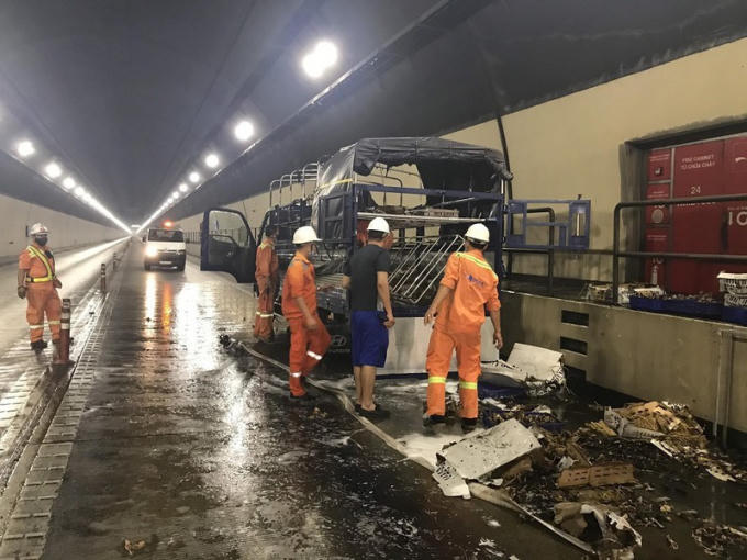 Khi đến Km2+800 thì phía sau thùng xe bất ngờ bốc cháy, khói đen bốc nghi ngút trong hầm. Phát hiện sự việc, tài xế nhanh chóng dừng xe tại đoạn Km2+800, mở cửa thoát ra ngoài và hô hoán. Qua giám sát camera, đơn vị quản lý vận hành đã lệnh ngừng lưu thông tại đầu hai cửa hầm.