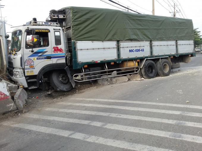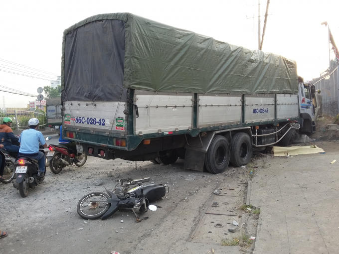 Tại hiện trường, giải phân cách nằm ngổn ngang, chiếc xe tải chắn gần hết làn xe máy, thi thể nạn nhân nằm dưới gầm xe tải.