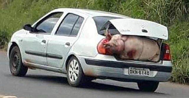 Những con lợn béo núc ních được người dân nhồi nhét vào sau cốp xe, thậm chí ghế sau ô tô con có lẽ là những hình ảnh khó tin nhưng có thật ở Brazil. Theo đó, vào ngày 10/6 vừa qua, một chiếc xe tải cỡ lớn chở 120 con lợn với giá ước tính khoảng 8.000 bảng Anh đã bị lật trên đường đưa đi tiêu thụ tại thị trường miền Nam nước này. Hàng chục con lợn đã chết ngay tại chỗ và hàng chục con cũng đã chạy vào xa lộ.