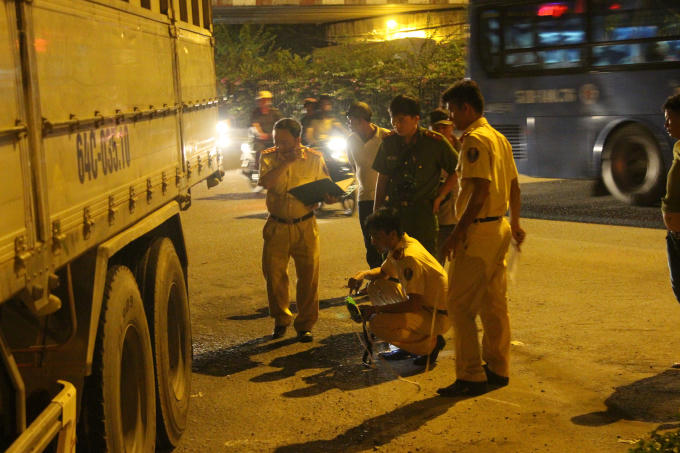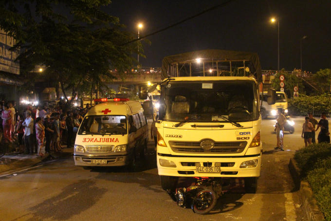 Tại hiện trường, xe máy nằm dưới gầm trước, thi thể nạn nhân nằm bánh sau xe tải.