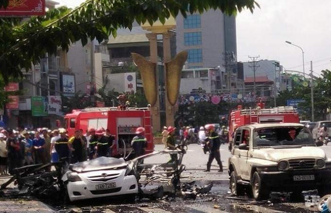 Thông tin ban đầu được xác định là một xe taxi đang chạy trên đường bỗng nhiên phát nổ, lái xe tử vong ngay trong xe. Xe taxi nổ khiến một người đàn ông điều khiển xe máy đang đi cùng chiều bên cạnh bốc cháy.