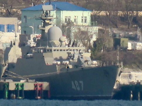 Trong ảnh đăng ngày 4.1.2017, có thể thấy chiếc Gepard 3.9 thứ hai (số hiệu tạm 487) không còn các dây cáp phủ quanh thân, chứng tỏ đã hoàn tất khâu khử từ thân tàu, chuẩn bị chạy thử nghiệm trên biển.