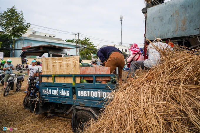 Những chiếc xe này có mặt từ sáng sớm, đợi dưa hấu đến nơi là bốc lên xe chở về. Theo anh Luân, chủ xe ba gác, các tiểu thương mua về bán lại nhằm hỗ trợ tiêu thụ là chính, nên ở khâu vận chuyển, anh cũng chỉ tính tiền xăng xe, lấy công làm lời.