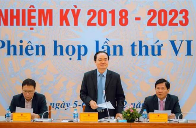 Bộ trưởng Bộ GDĐT, Chủ tịch Hội đồng GSNN nhiệm kỳ 2018-2023 Phùng Xuân Nhạ chủ trì phiên họp.