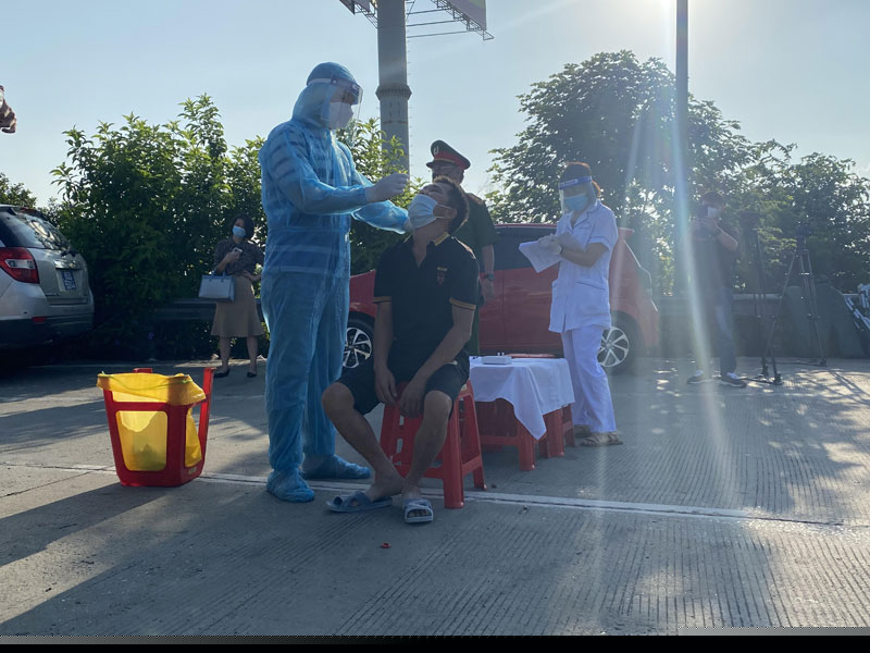 Sáng sớm 14/7, tại 22 chốt kiểm soát dịch của Hà Nội, có mặt sớm nhất tại các điểm chốt là lực lượng y tế đóng vai trò chính trong việc kiểm tra những trường hợp nghi vấn. Đối với các trường hợp nghi nhiễm, lực lượng y tế tại các chốt kiểm soát dịch của Hà Nội sẽ tiến hành lấy mẫu test nhanh tại chỗ.