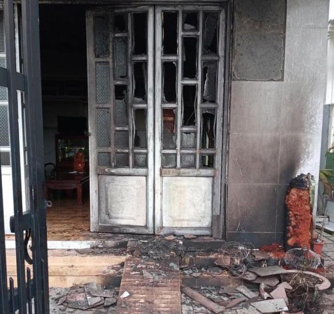 Hiện trường vụ phóng hỏa đốt nhà cảnh sát hình sự.