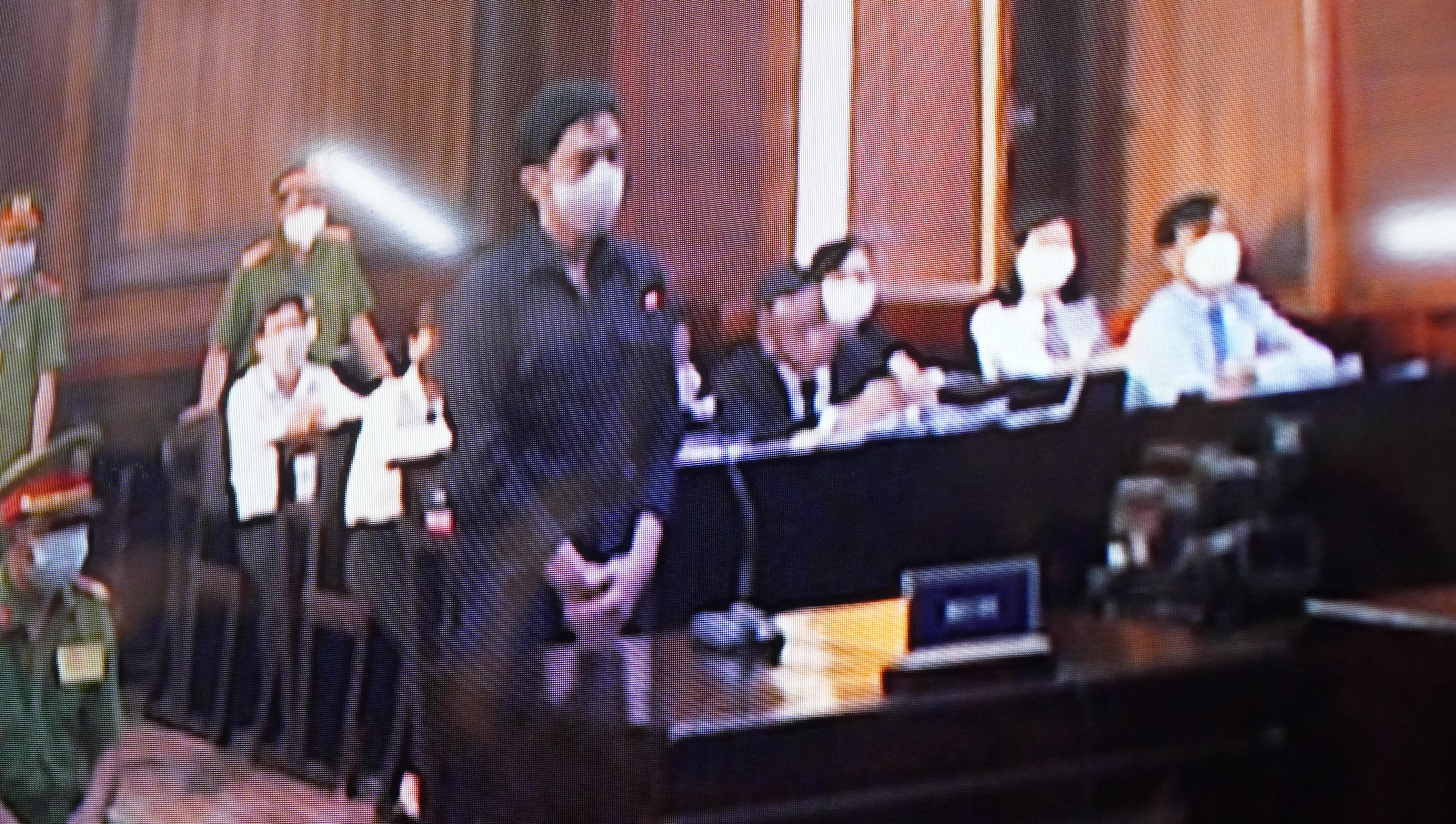 Bị cáo Nguyễn Kim Trung Thái tại phiên xét xử sáng nay.
