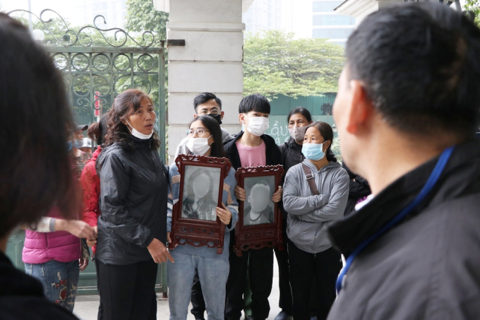Người nhà cầm di ảnh của nạn nhân tới tòa