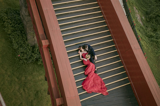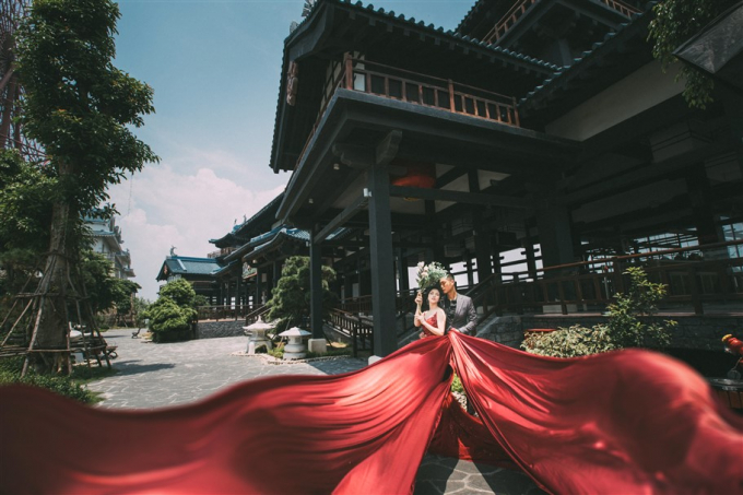 Cũng giống Uyên - Linh, đôi bạn trẻ Hoàng- Trang đến từ Hải Phòng cũng đã đưa bối cảnh Sun World Halong Complex vào bộ hình cưới để đời của mình. Việt Hoàng chia sẻ: “Thời gian qua, cộng đồng mạng chia sẻ rất nhiều hình ảnh về Cầu Koi, cây cầu biểu trưng cho sự hòa hợp âm dương, cho tình yêu bền vững. Đó là lý do chúng mình muốn có một bộ hình cưới tại nơi rất đặc biệt này.”