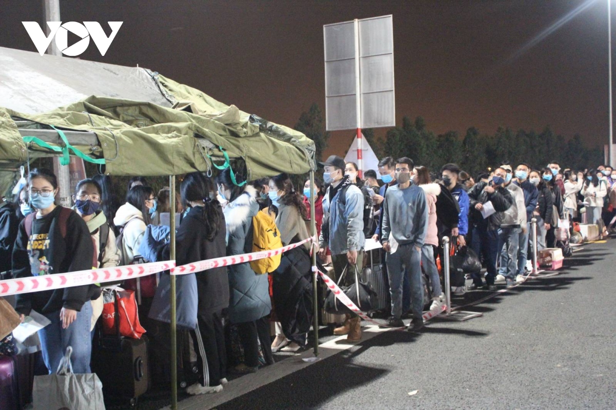 Lượng người làm việc, học tập ở các nơi khác bắt đầu dồn về Quảng Ninh cũng rất đông. Cả chiều đi và chiều về, dòng người nối đuôi nhau, ùn lại tập trung khai báo y tế....