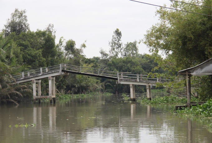 Thế nhưng, cây cầu đã xây dựng cách nay cũng đã hơn 14 năm. Toàn bộ cây cầu do người dân vận động bỏ tiền ra xây dựng, do không có nhiều kinh phí nên sử dụng những vật liệu không đảm bảo chất lượng, dần dà theo thời gian cây cầu đã xuống cấp nghiêm trọng. Lan can giữa cầu bị rỉ sét, người dân phải dùng cây tre để buộc tạm. Nguy hiểm hơn 1/3 trụ cầu đã bị lún xuống hơn 1,5m so với trụ cầu còn lại.