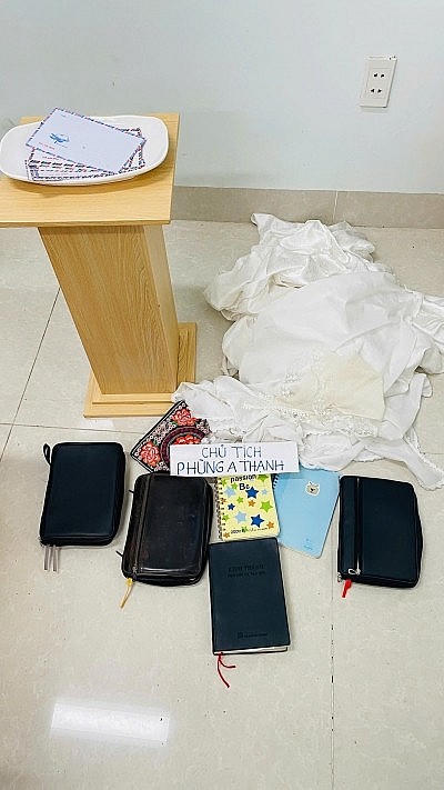 Khám xét hiện trường, cảnh sát đã thu giữ một số tài liệu và công cụ phục vụ sinh hoạt tôn giáo liên quan đến "Hội thánh Đức Chúa trời mẹ".