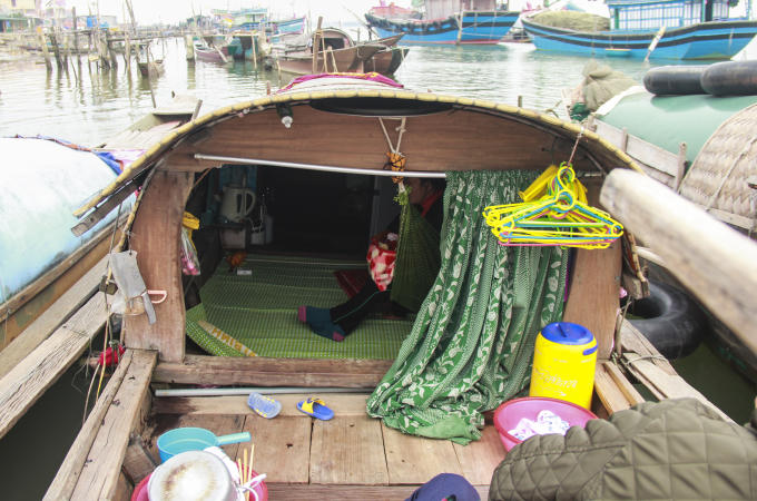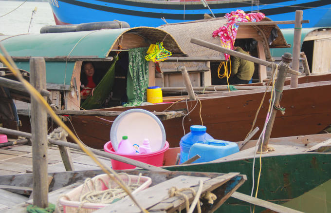 Cúi gập người chui vào trong chiếc đò cũ của gia đình anh Lịch ngồi trò chuyện, anh Lịch cười rồi nói với vẻ đùa mà thật: “Tết nhất thì họ có nhà, có đất mà xông đất đầu năm mới, còn chúng tôi ở đây, mấy chục năm nay có biết xông đất là chi mô. Làm chi có đất, có nhà mà xông”.