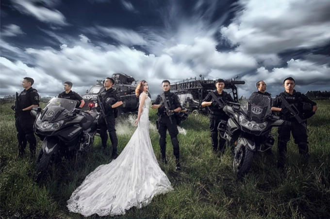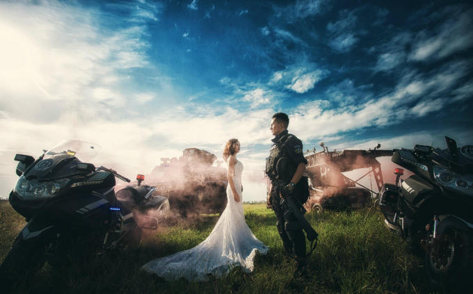 Ngày 12/10, anh Ma Junwen, một cảnh sát đặc nhiệm tại Sở Cảnh sát thị trấn Đức Dương, tỉnh Tứ Xuyên, Trung Quốc đã có một bộ ảnh cưới ấn tượng.Chỉ còn ít ngày nữa,anh Ma Junwen cùng cô bạn gái lâu năm sẽ kết hôn. Bởi vậy, họ đang phải gấp rút chuẩn bị những thủ tục cần thiết, trong đó bao gồm việc chụp ảnh cưới.