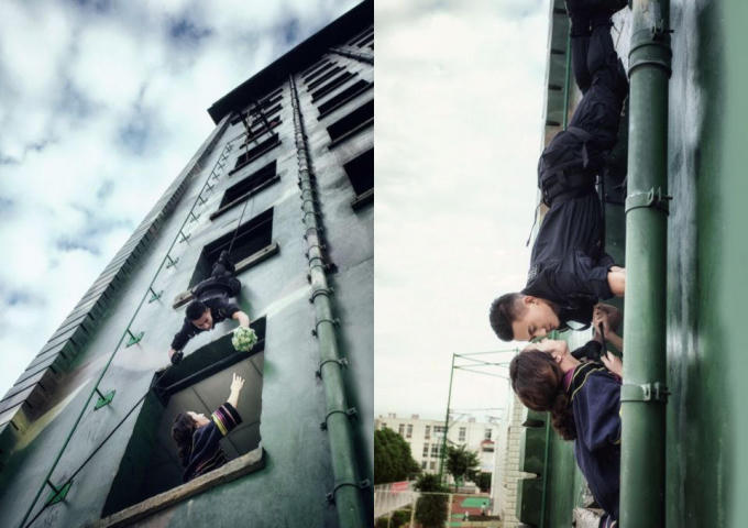 Xôn xao bộ ảnh cưới có 1-0-2 của chàng cảnh sát đặc nhiệm và vị hôn thê trong khu huấn luyện