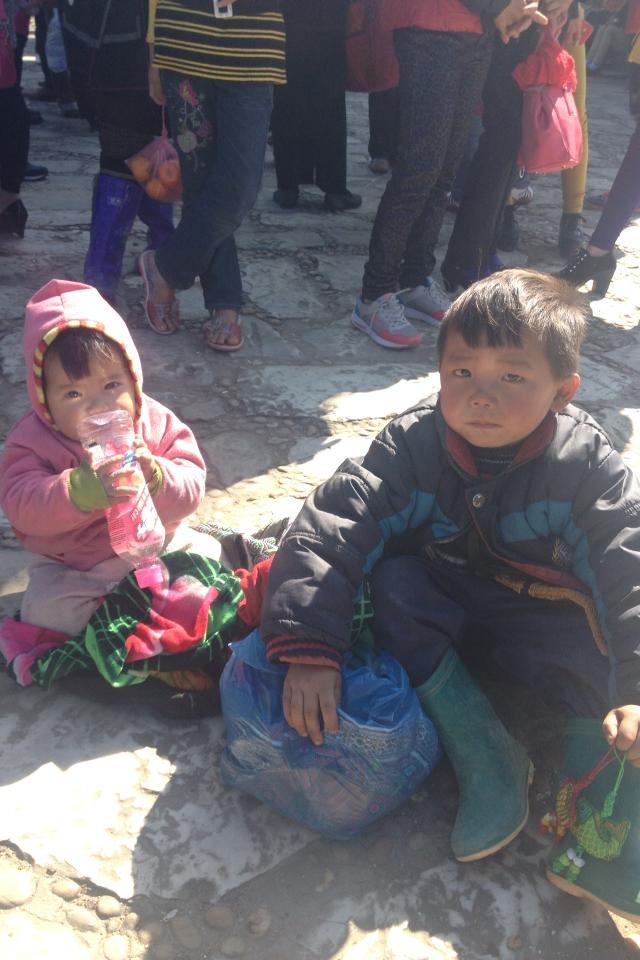 Mặc dù mới chỉ 4 -5 tuổi, nhưng hàng ngày các em vẫn phải “địu” trên vai những đứa bé chưa đầy 3 - 4 tháng tuổi để bán hàng, xin tiền kiếm sống.
