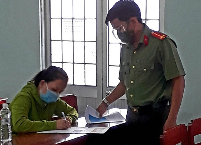 Lê Kim Liên tại cơ quan Công an. (Ảnh: báo Công an nhân dân)