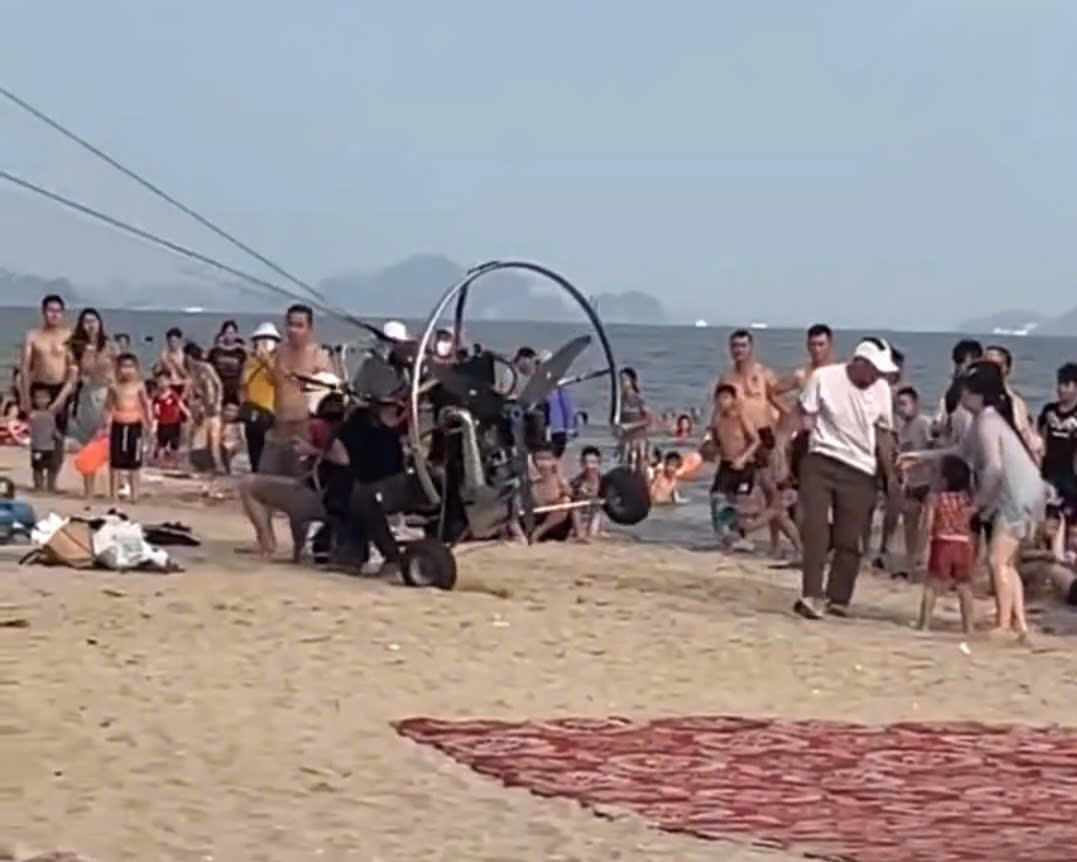 Trước đó như Pháp luật Plus đưa tin, sáng 19/6, một đoạn clip lan truyền trên mạng xã hội gây xôn xao ghi lại cảnh một chiếc dù lượn hai chỗ, gắn động cơ, trong lúc lấy đà cất cánh trên bãi cát của Bãi Cháy (TP Hạ Long, Quảng Ninh), bất ngờ mất kiểm soát, lao thẳng vào nhóm du khách đang tắm biển, trong đó có cả trẻ nhỏ.