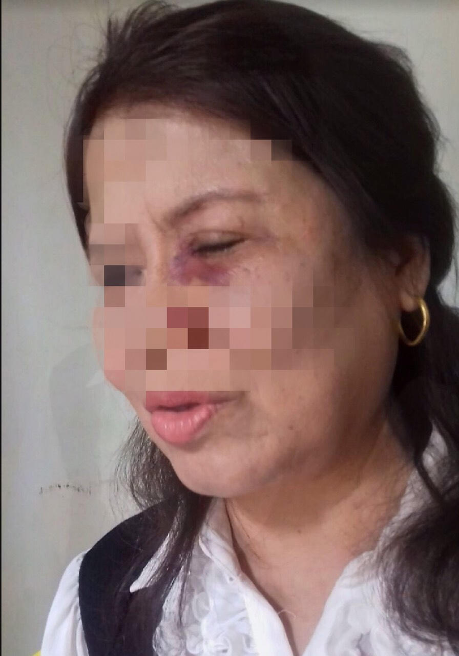 Hình ảnh bà Nguyễn Thị Lan (Giáo viên trường tiểu học Đại Nghĩa) bị thương tích vùng mắt.