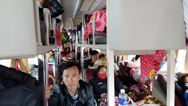 Xe này chỉ được chở 46 người nhưng đã "nhồi" đến 60 hành khách. Nhiều hành khách phải nằm, ngồi vạ vật giữa các lối đi ở sàn xe trong tình trạng mệt mỏi. Do căng thẳng tàu xe đầu năm mới nên hành khách phải chấp nhận đi “nhét” với giá cao.