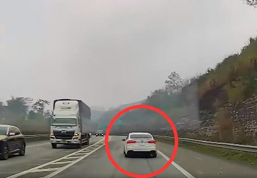 Hình ảnh tài xế điều khiển quay đầu gây nguy hiểm trên cao tốc. Ảnh cắt từ clip.