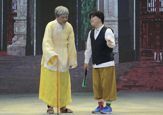 Đúng như những gì nghệ sĩ Xuân Hinh chia sẻ, anh cùng với NTK Đức Hùng tất bật sắm sửa trang phục trong sản phẩm ra mắt trước Tết có tên "Tình già vui xuân" của đạo diễn Phạm Nguyên Bắc.