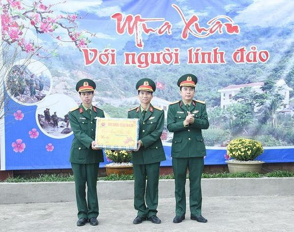 Cũng trong dịp này, đoàn lãnh đạo tỉnh Hà Tĩnh đã trao tặng những món quà xuân đầy ý nghĩa đến với những người lính đảo Sơn Dương.