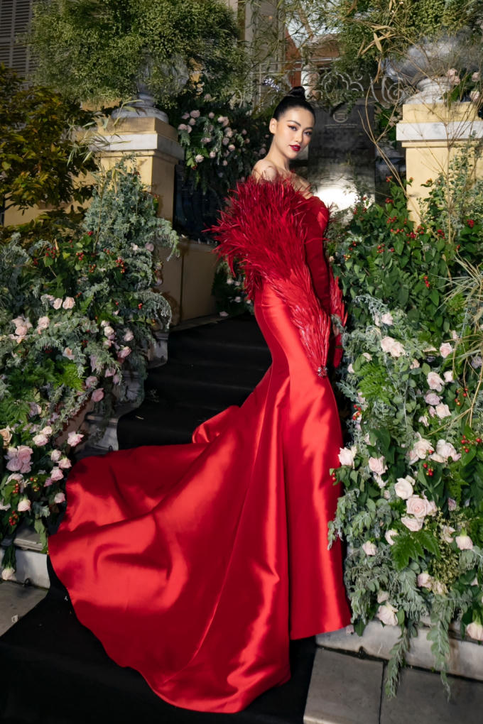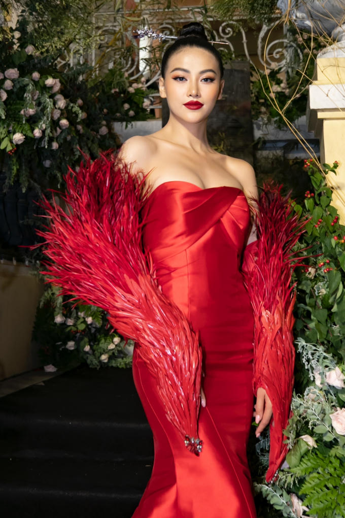 Với sắc đỏ lộng lẫy cùng phụ kiện lông tượng trưng cho vẻ đẹp của phượng hoàng lửa, Phương Khánh đã mang nét đẹp đậm chất Á - Đông với tạo hình lần này. Ngoài bộ trang phục, người đẹp còn chọn 1 layout trang điểm khác để tạo sự mới mẻ đối với công chúng.