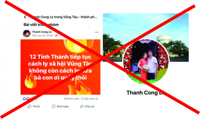 Thế nhưng mới đây, ngày 15/4, một tài khoản facebook có tên Thanh Cong Le đã thông tin sai sự thật trên nhóm "Vũng Tàu..." có rất nhiều người tham gia bằng dòng trạng thái “12 Tỉnh Thành tiếp tục cách ly xã hội Vũng Tàu không còn cách ly nữa bà con ơi quẩy thôi” - Trích status của Thanh Cong Le.