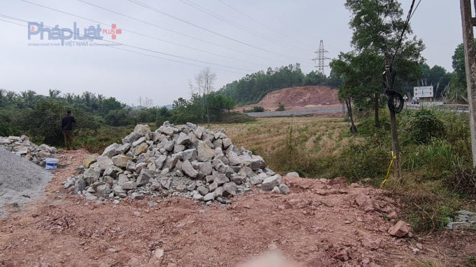 Chưa được cấp thẩm quyền cho phép chuyển đổi mục đích sử dụng đất, nhưng hộ bà Thủy đã cho đổ hàng nghìn m2 đất, đá trái phép lên đất nông nghiệp.