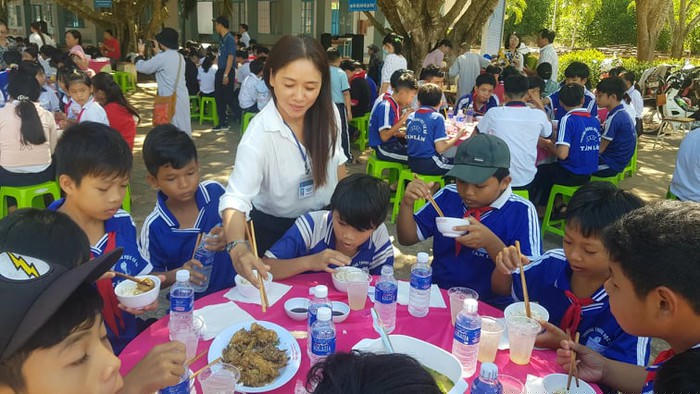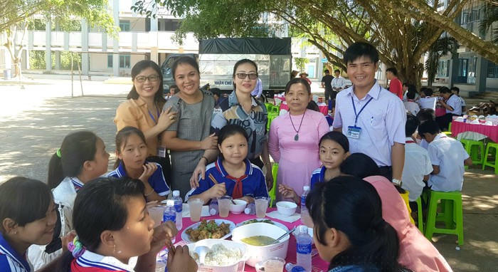 Hôm qua là cô giáo, hôm nay là mẹ hiền phục vụ học trò “Bữa cơm tình thầy trò” lần thứ 9. (Ảnh do tác giả cung cấp)