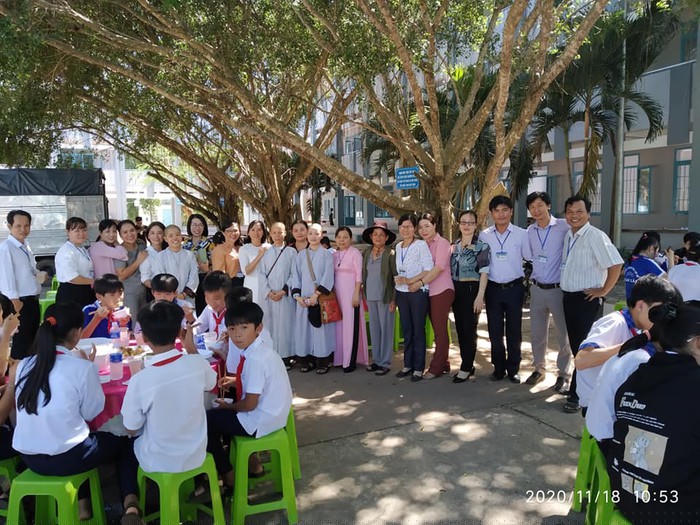 Sau lễ 20/11 hàng năm nhà trường tổ chức bữa ăn trưa cho các em cùng chung vui với thầy cô giáo; đầu bếp, phục vụ cũng chính là giáo viên, nhân viên trong trường.