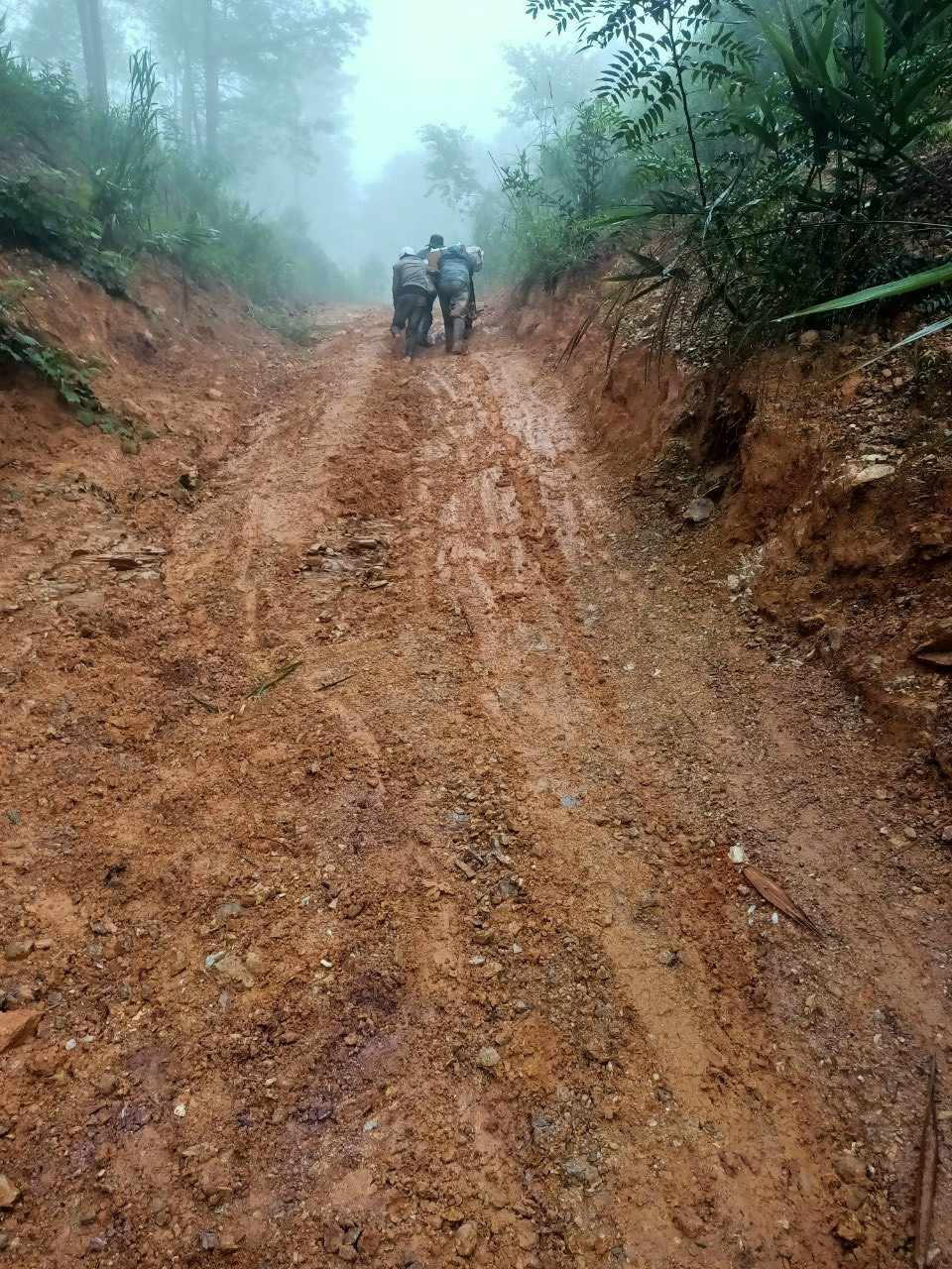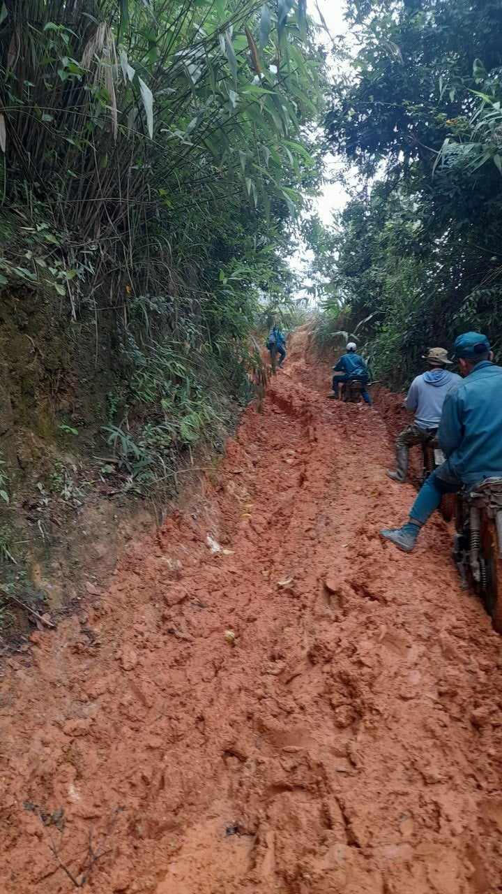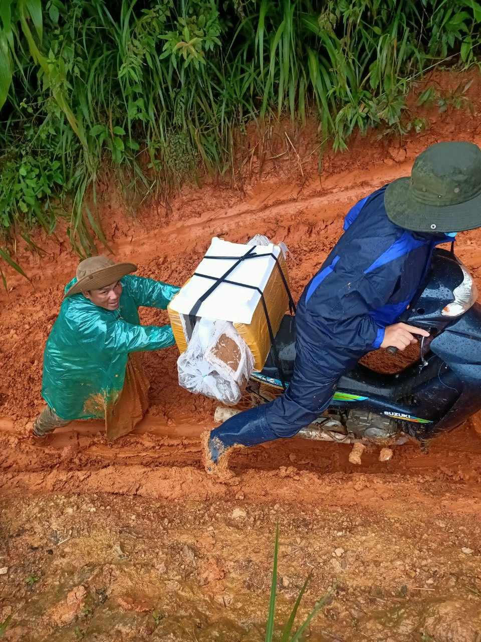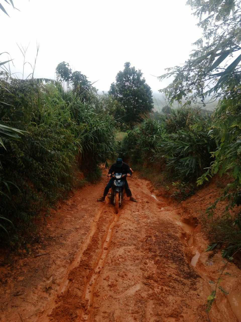 Xe máy cần sự hỗ trợ của sức người mới vượt dốc thành công.