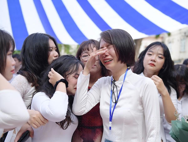 Giây phút kết thúc năm học bằng những tiếng trống trường réo rắt cũng là lúc, những nụ cười chào tạm biệt, những giọt nước mắt, những cái ôm thật chặt của học sinh lớp 12 trường THPT Việt Đức dành cho nhau.