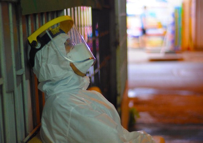 Giấc ngủ mệt mỏi sau một đêm thức trắng để lấy mẫu xét nghiệm COVID-19 ngay trong những ngày Tết. Ảnh:HCDC
